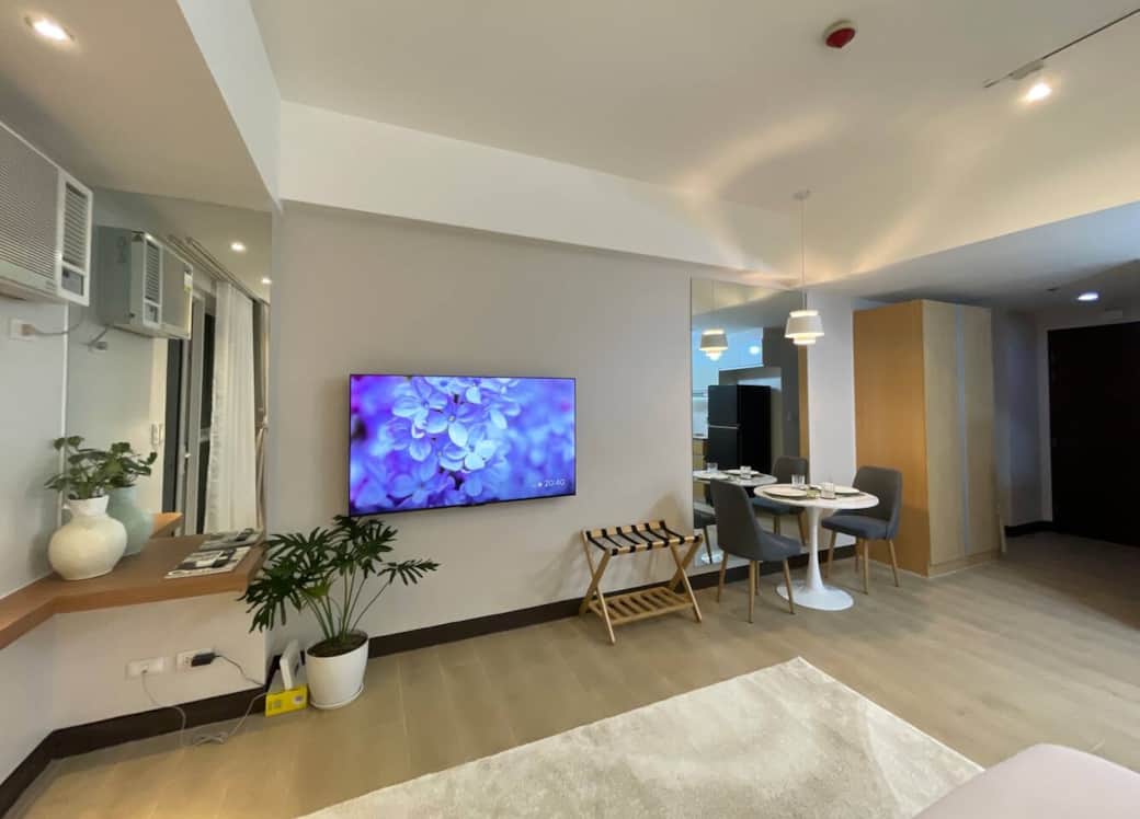 Discover a stylish sanctuary located conveniently at the heart of this destination. Discover the enchanting Venice Grand Canal Mall and its residential area, which captures the unique allure of Venice. Immerse yourself in the vibrant atmosphere of this city by enjoying its various attractions, shopping districts, and entertainment options, all within easy reach due to its central position. This place is wifi and netflix ready. It is a studio unit in a minimalist design, complete with a balcony and a king-size bed mattress for a spacious sleeping area. The beds come with cozy linens, top-notch pillows, and a supportive mattress for your comfort. The apartment is conveniently situated near the popular The Venice Grand Canal Mall, offering a great opportunity to enjoy delicious meals, shop to your heart's content, and catch up with friends over a cup of coffee. You’ll find this famous shops at your convenience. #starbucks #lawsonsconvenientstore #Denny’srestaurant #marygracerestaurant #CIBO italian restaurant #enderunschool This place is wifi and netflix ready. We're happy to offer on-site parking for a fee of P400 per night. If you'd like to reserve a spot, just give us a heads up in advance!Please let us know in advance if you'd like to reserve a spot. You can use the entire space with WiFi and Netflix access and enjoy your own balcony with a skyline view.